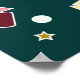 Bright and funky seamless Christmas pattern, colourful gifts, stars and snowflakes on green background.