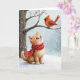 Christmas Ginger Kitty Watching a Cardinal Card