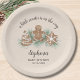 This Christmas Gingerbread Baby Shower paper plate is decorated with watercolor gingerbread cookies and pine greenery on a soft beige background. Easily customisable. Perfect for a festive boy's, girl's, or gender-neutral baby shower.