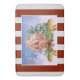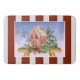 This memory foam bath mat is available in three different sizes and will certainly liven up your holiday bathroom decor this year! It features a watercolor design of a gingerbread house on a bough of evergreens with red berries and a red bow. There are dark red stripes and a soft grey background behind the design.