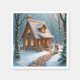 A whimsical gingerbread house is nestled in a snowy forest, illuminated warmly from within, as a snowman waits on a stone pathway