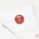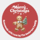 Perfect for homemade cookies, bakery goods. A classic red background and white text.  Merry Christmas is written with a retro style font. Decorated with a gingerbread man holding a Christmas tree.  Personalise and add your family