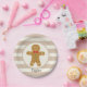 Cool, retro, colourful kid's Christmas Gingerbread Man, brown, red, green design on white stripes, striped pattern with vintage feel. Perfect gift for baby, toddler, kids, children, teens, or adults! Personalised the design by adding a child's name or custom text. Visit our store, Birthday Party House, for more great customisable boy and girl products!