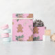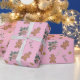 This cute and feminine design features a Christmas pattern of gingerbread men, bows, candy canes, Poinsettias and glitter gold stars on a pink background.  Add a touch of whimsy to your holiday season gift gifting with this fun and festive wrapping paper.  The gold glitter is not "actual real" glitter but a printed effect.