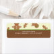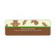 Christmas labels featuring a background of brown at bottom with green trim. Personalise the white text. Gingerbread men in various sizes over beige background at top.