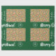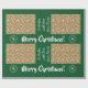 Modern Christmas giftwrap for kids with the words "Merry Christmas" in stylish typography, a personalised dedication now reading "To Amber / with love / from Santa," snowflakes, and a pattern with reindeer, Xmas trees, baubles, snowflakes, Santa, snowmen, gingerbread men, stockings, and gift boxes. On a green background.
