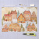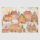 Sweet gingerbread houses all together in a charming Christmas village. They are fun as they help us keep in touch with old-fashioned winter holiday themes. The snowy scene is a vintage, watercolor.