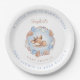Christmas Boy Baby Shower Paper Plates with a cute Christmas sleeping Deer and Gingerbread Cookies wreath in blue and beige. Easily personalise the text - Kate Eden Art