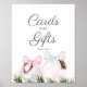 An elegant girl baby shower Cards and Gifts Sign Poster. Designed with pink and white watercolor Christmas ornaments. Lettering is editable - click the "Customise Further" button to edit. Matching items in our store Cava party design