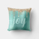 Christmas Glitter Drips Teal Metallic Typography Cushion