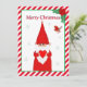 Christmas gnome & cute red bird Christmas Card. Text can be personalised.