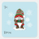 A cute Christmas Gnome all in red, green and white is holding a mug of hot chocolate