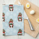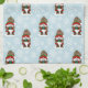 A cute Christmas gnome all in red, green and white is holding a mug of hot chocolate.