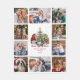 This unique personalised photo collage blanket makes a wonderful family Christmas keepsake gift. There are 10 photos around the outside, with cute watercolor holiday gnomes in the centre of the blanket, holding gifts next to a Christmas tree.