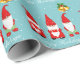 Christmas Gnomes & Bells on Light Blue Wrapping Paper