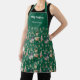 Green background with a traditional Scandinavian style Christmas farmhouse decor, gnomes, wood logs,pine trees. Text. Merry Christmas. Personalise and add a name. White text.