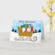 Cute hand drawn Christmas Gnomes in a winter sled full of gifts, Merry Christmas Card.
