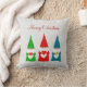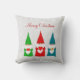 Modern cute Christmas gnomes dressed in red, blue and green on light silver grey Pillow. Text only on the front side! Merry Christmas!