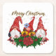 Christmas Gnomes Poinsettia Whimsical Woodland Square Paper Coaster