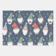 Christmas Gnomes Santa Claus Blue Green Whimsical Wrapping Paper Sheet