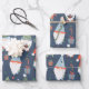Christmas Gnomes Santa Claus Blue Green Wrapping paper sheets. Three sheets with the same pattern.