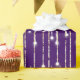 Gold and silver vertical glowing light string design on a rich purple background.
