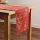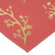 Holiday table runner features Hand drawn gold branches on festive red background