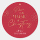 Christmas Gold Glitter Script Name Red Modern Classic Round Sticker