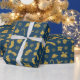 Christmas gold pattern blue background wrapping pa paper