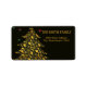 This is Christmas Gold Tree with Black Background return address label design. This design feature is a gold handwritten font with scroll frame accents on a White Snow Glitter background with a rustic textured look. Custom return address text. Personalised address labels for all your mailings.