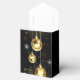 Christmas Golden Ornaments Shiny Stars Black Favour Boxes. Unique, beautiful, stylish design. Easy to be personalised. Font style, size and colours can be changed. Matching items available.