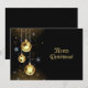Christmas Golden Ornaments Shiny Stars Black Holiday Card