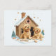 Christmas Golden Retriever Dogs Gingerbread House Postcard
