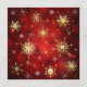 Red Christmas background with gold and white jewellery snowflakes. Golden snowflakes.