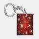 Christmas Golden Snowflakes on Red Background Key Ring