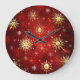 Christmas Golden Snowflakes on Red Background Large Clock