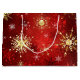 Christmas Golden Snowflakes on Red Background Large Gift Bag