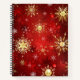 Red Christmas background with gold and white jewellery snowflakes. Golden snowflakes.
