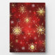 Christmas Golden Snowflakes on Red Background Plaque