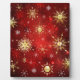Red Christmas background with gold and white jewellery snowflakes. Golden snowflakes.