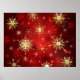 Christmas Golden Snowflakes on Red Background Poster