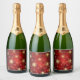 Christmas Golden Snowflakes on Red Background Sparkling Wine Label