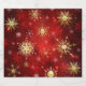 Red Christmas background with gold and white jewellery snowflakes. Golden snowflakes.