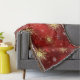 Christmas Golden Snowflakes on Red Background Throw Blanket