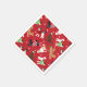 Cute Christmas Goldendoodle / Labradoodle dogs in festive holiday outfits. Dogs with black, brown, tan, cream and white coats wear Santa hats, antlers, sweaters on a holiday background with scattered ornaments.