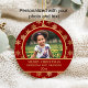 "Merry Christmas Grandma and Grandpa" Christmas ornament from grandchild/grandchildren to their grandparents. Design is a pattern of gold snowflakes on a shiny iridescent red background. Personalise with your photo and year. Text is customisable, so it doesn't matter what names you have for your grandparents or whether you say "Merry Christmas" "Happy Holidays" or something completely different, this can be customised perfectly for you.