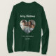 Green shirt. Personalise and add your own family photo. Heart shaped frame. Add your family name and year. White text.