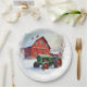 Christmas Green Farm Tractor and Red Barn Paper Plate
