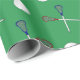 Modern and trendy sports green lacrosse pattern with lacrosse sticks and a white rubber ball background with the words Merry Christmas and a green christmas trees pattern. Sports gift ideas for men and boys and girls. Lacrosse christmas gift ideas.