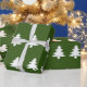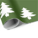 A pattern of white Christmas trees appears on this dark green tissue paper.